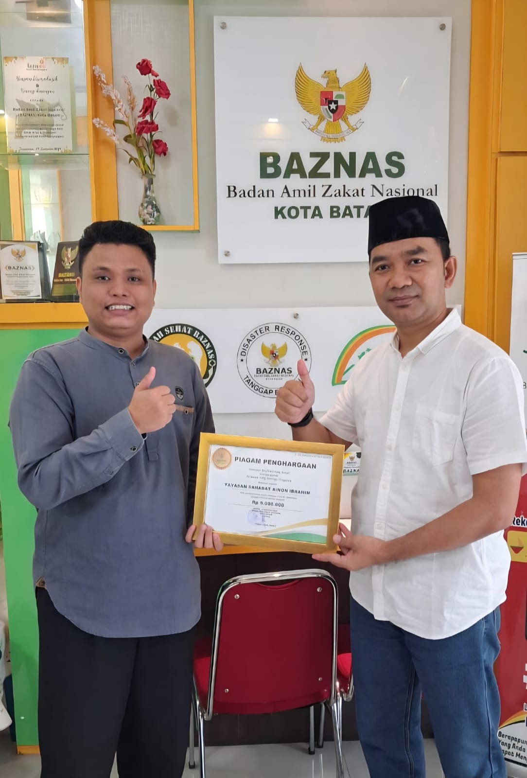 Sebagai bentuk penghargaan, BAZNAS Batam memberikan Piagam Penghargaan kepada YSAI atas partisipasinya dalam program kemanusiaan Pray For Sumatra.