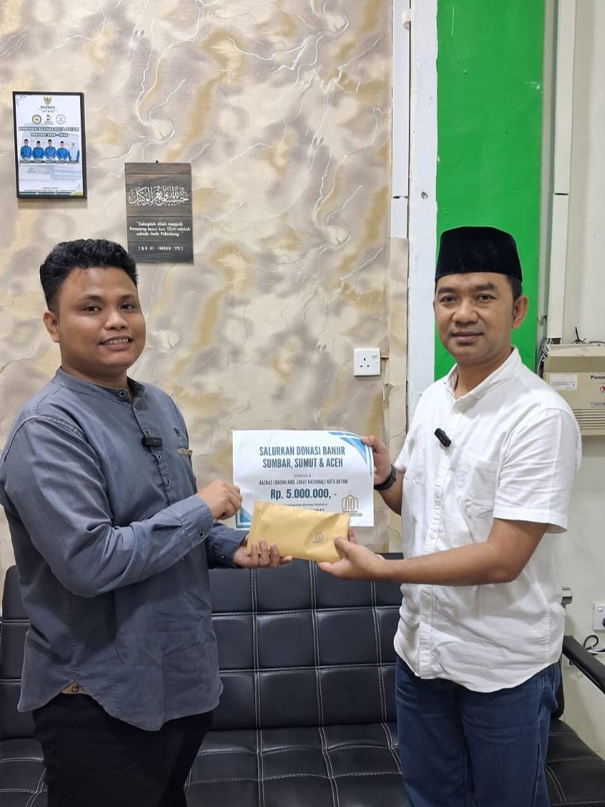 Batam, publikatodays.com— Yayasan Sahabat Ainon Ibrahim (YSAI) menyalurkan bantuan kemanusiaan bagi korban banjir di Aceh, Sumatera Utara, dan Sumatera Barat melalui Badan Amil Zakat Nasional (BAZNAS) Kota Batam. Bantuan berupa uang tunai sebesar Rp5 juta diserahkan langsung di Kantor BAZNAS Batam, Batam Centre, dan diterima oleh Ustadz Harith Ramanaldi selaku perwakilan BAZNAS Batam.