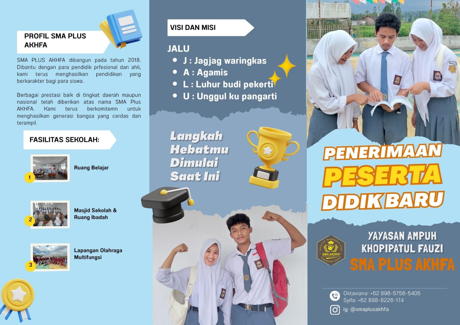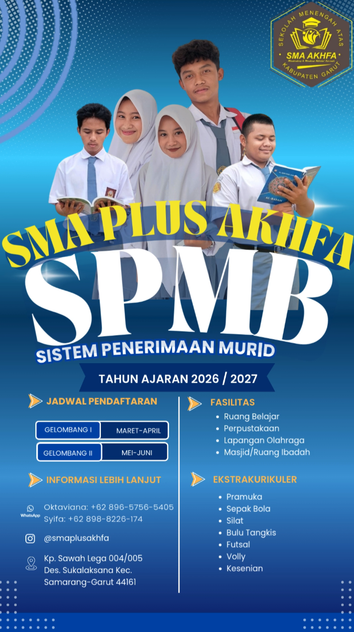 📞 Untuk informasi lebih lanjut dan pendaftaran, silakan hubungi kontak resmi SMA Plus Akhfa atau kunjungi lokasi sekolah kami, bersama Yayasan Ampuh Khopipatul Fauzi!